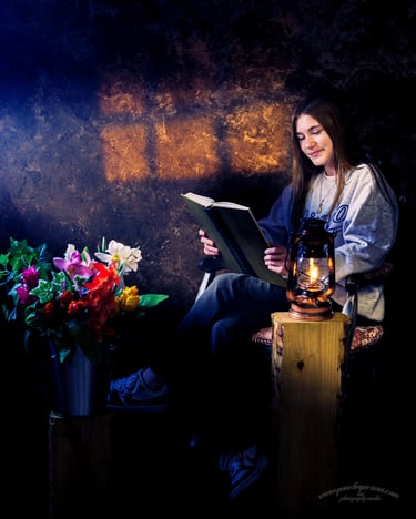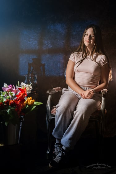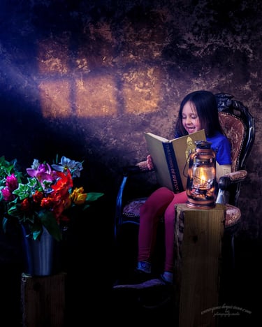 a painterly backdrop, a few playful props,